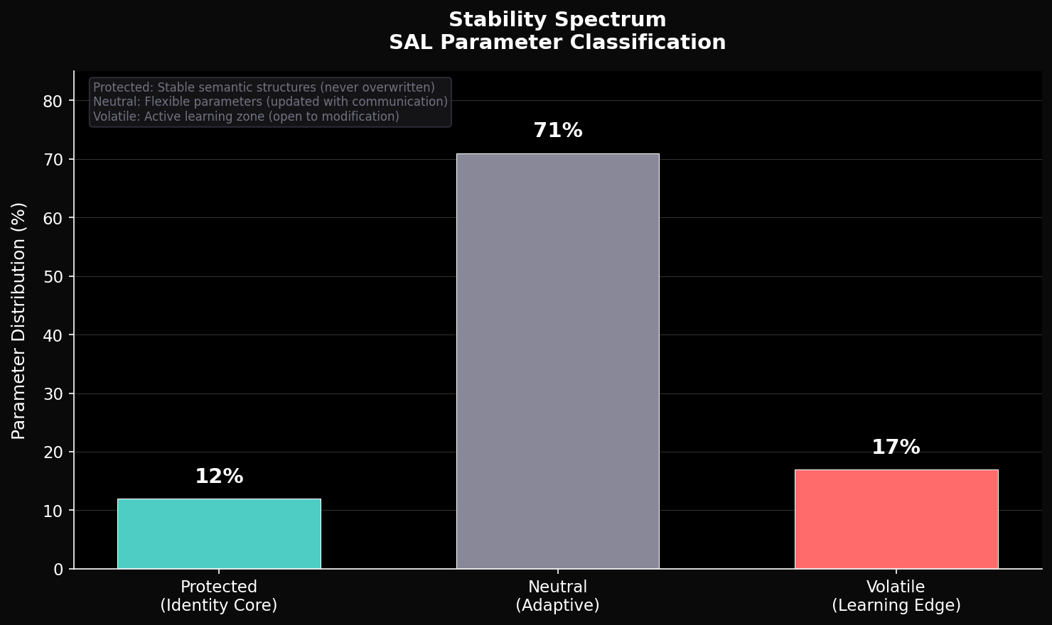 Paper · 2025A training paradigm introducing a Communication Layer between loss functions and optimizers. SAL detects parameter stability and protects consolidated structures during continued training, reducing catastrophic forgetting while maintaining plasticity.